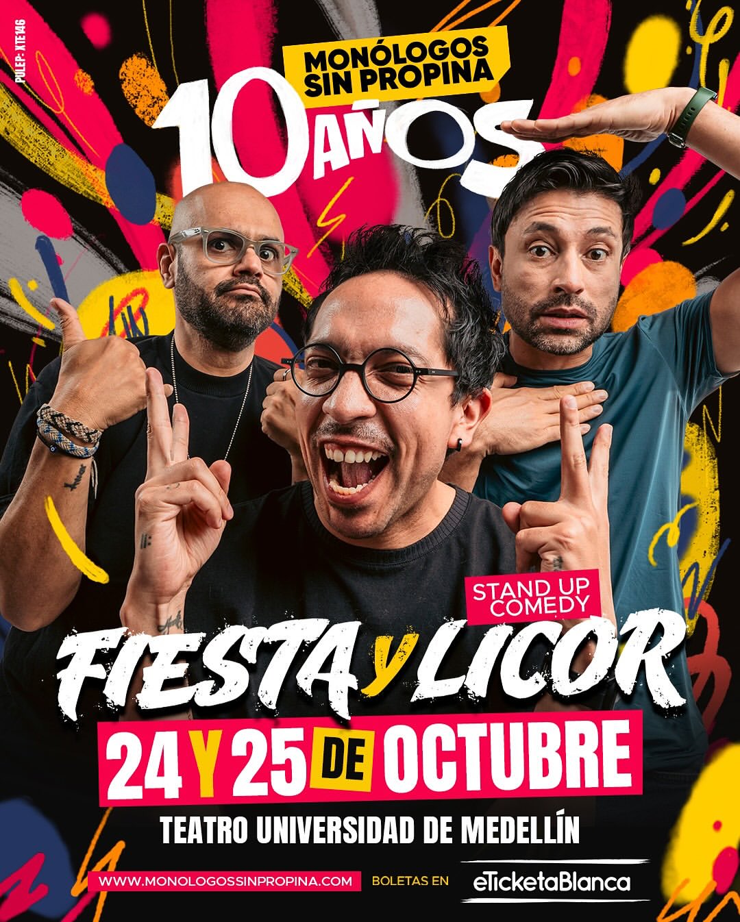 Como parte de la celebración por sus 10 años, Monólogos sin Propina presenta: FIESTA Y LICOR. Una noche para hablar de lo que pasa cuando se nos va la mano… o la copa. Chicho, Frank y Adrián se sueltan con historias etílicas y guayabos brindando con el público mientras hacen sus mejores rutinas.